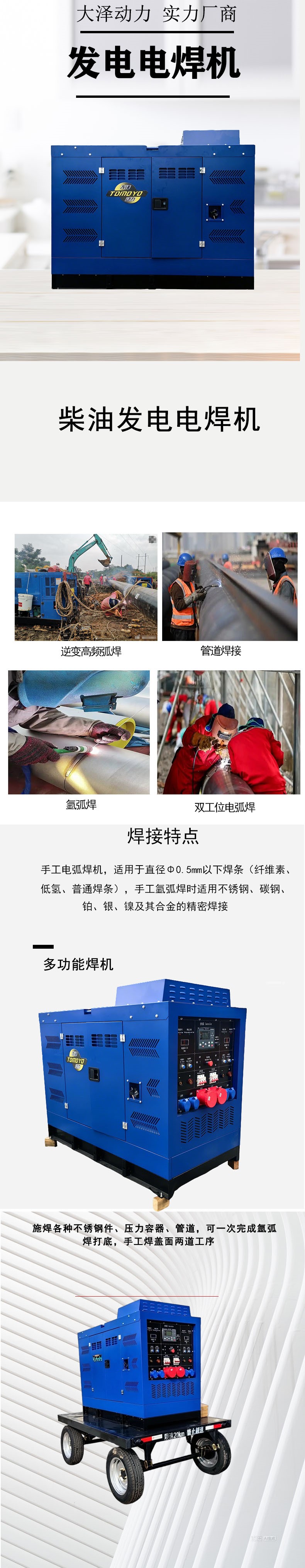 大泽动力400A柴油发电电焊机 双工位主要特点: